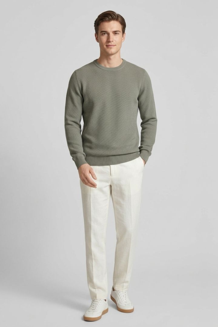 Maglia girocollo in cotone con lavarzione nido d’ape