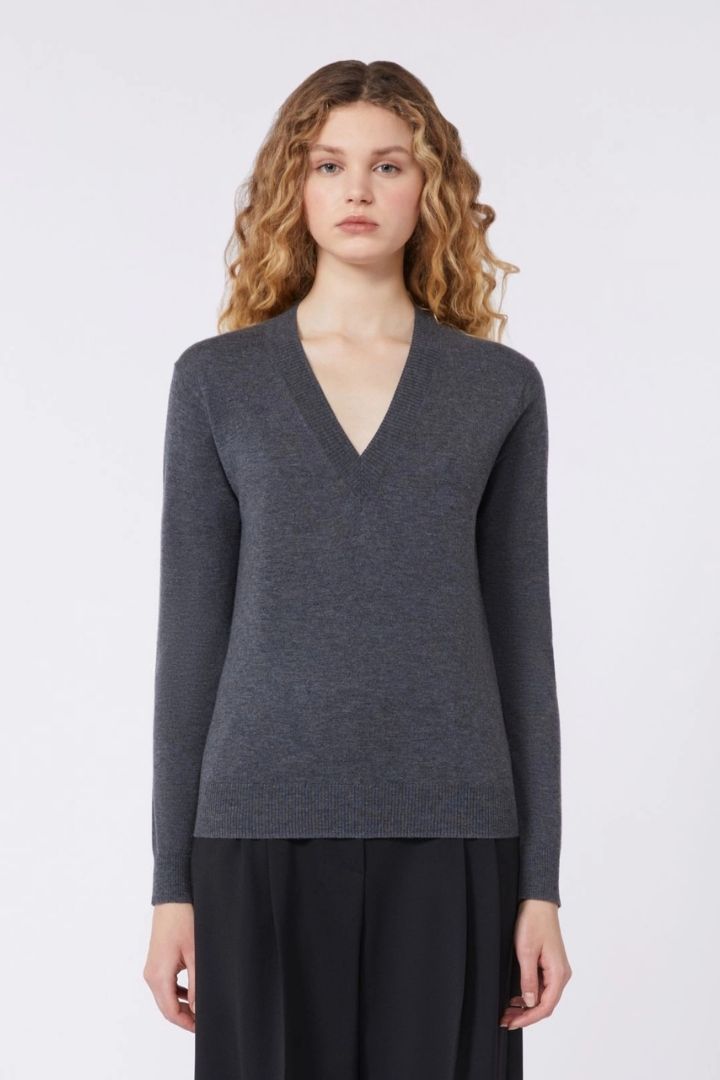 MAGLIA SCOLLO A V FILATO LANA/CASHMERE SOTTILE