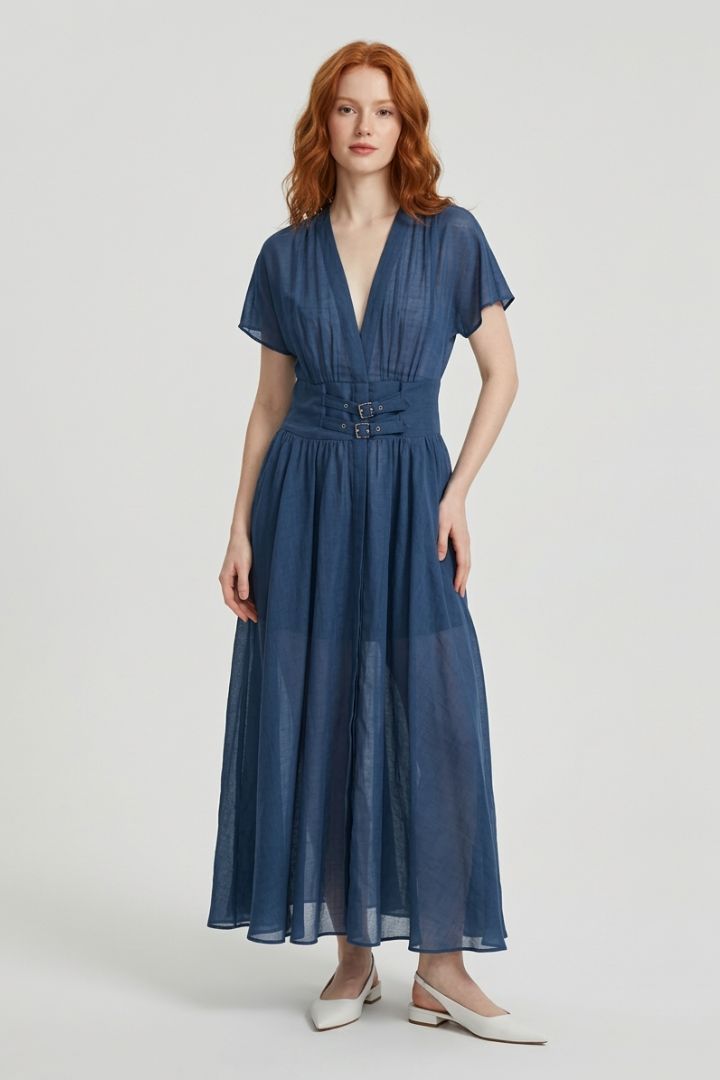ABITO LUNGO SCOLLO V M/M C/DOPPIA CINTURA APPLICATA