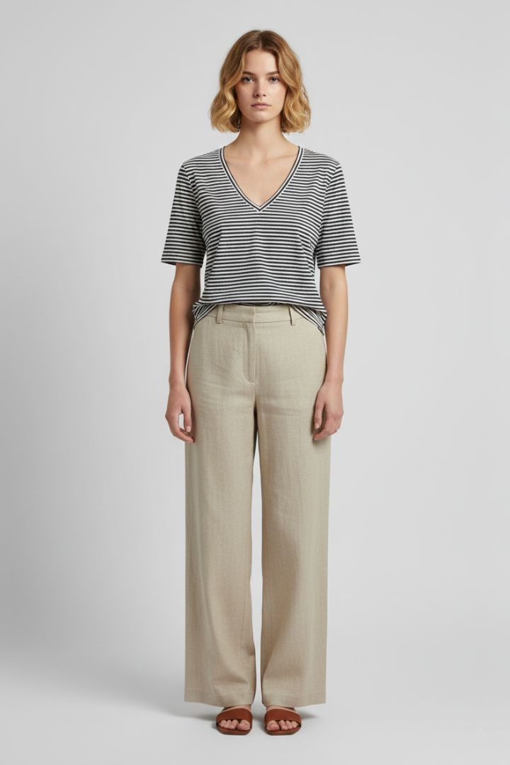 T-SHIRT SCOLLO A V M/M JERSEY LINO STRETCH RIGATO