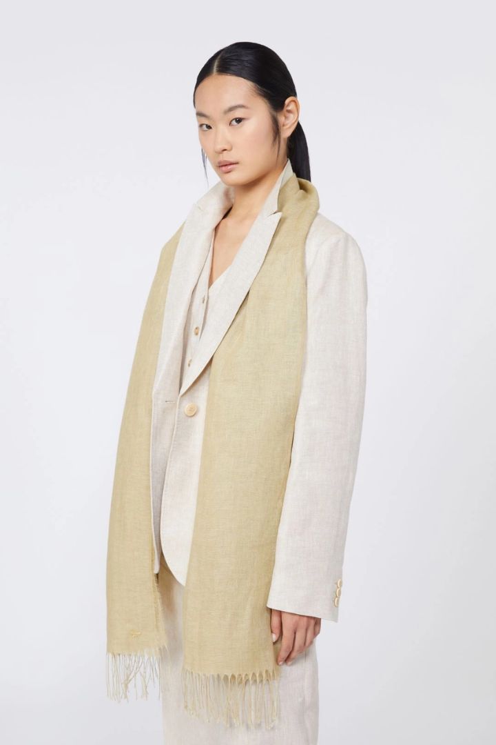 STOLA IN PURO LINO BIO CON FARFALLA RICAMATA CM 70×205