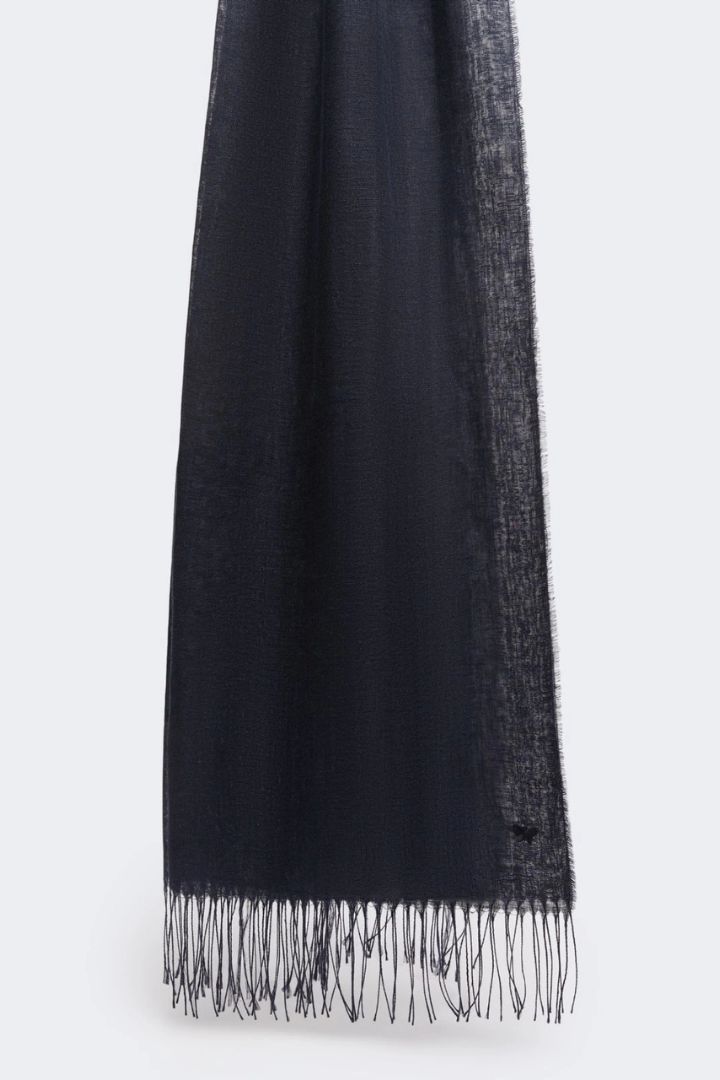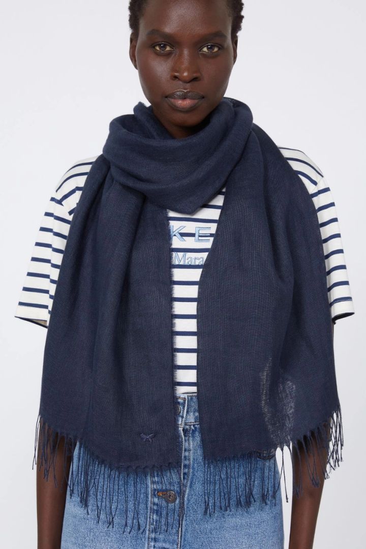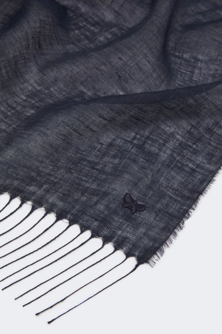 STOLA IN PURO LINO BIO CON FARFALLA RICAMATA CM 70×205