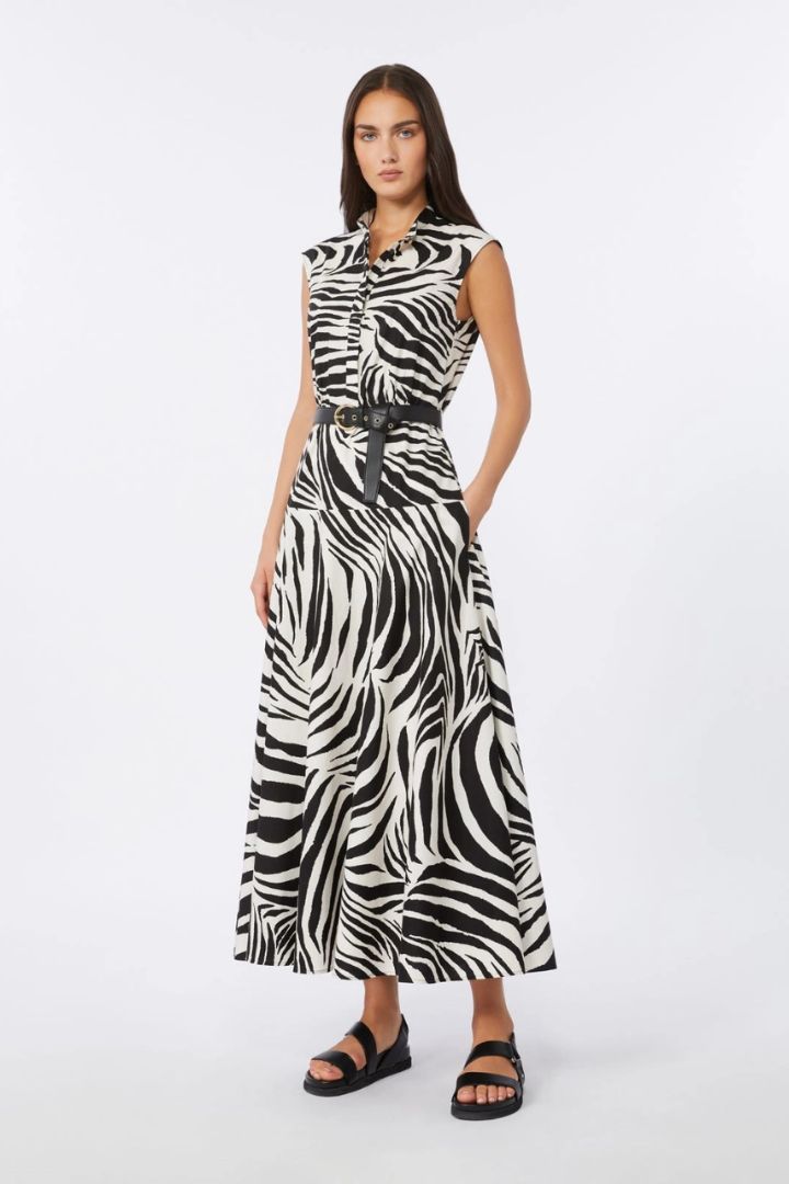 ABITO LUNGO COLLO ALLA COREANA SENZA MANICHE CON CINTURA STAMPA ZEBRA