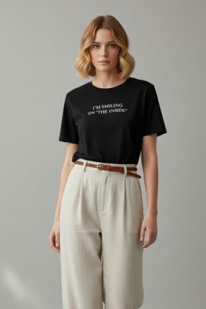 T-SHIRT GIROCOLLO M/M SLOGAN ” I’M SMILING ON THE INSIDE”