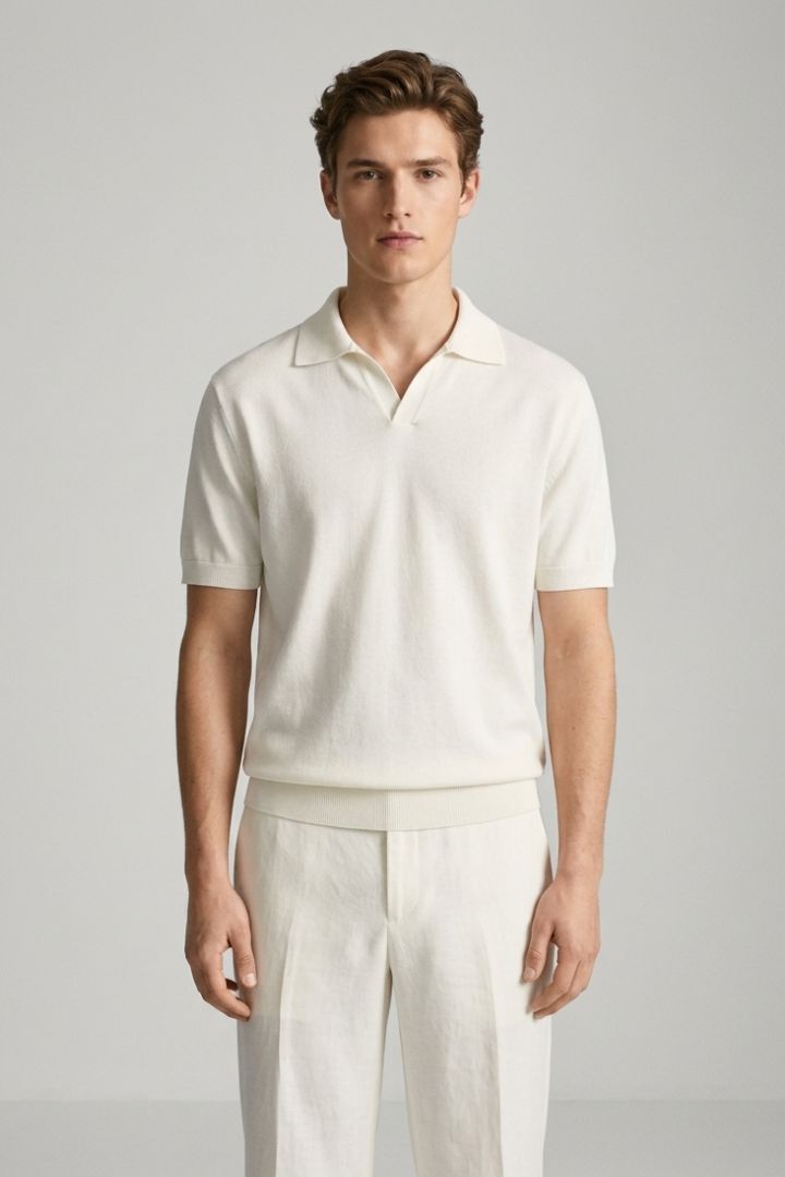 Polo in filo di cotone con colletto senza bottone