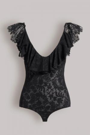 BODY SCOLLO A V S/M CON GALA IN PIZZO DI LANA