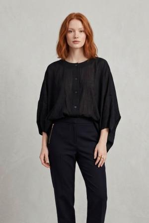 CAMICIA OVER COTONE STROPICCIATO SENZA COLLO