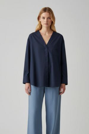 CAMICIA M/L SENZA COLLO IN POPELINE PURO COTONE