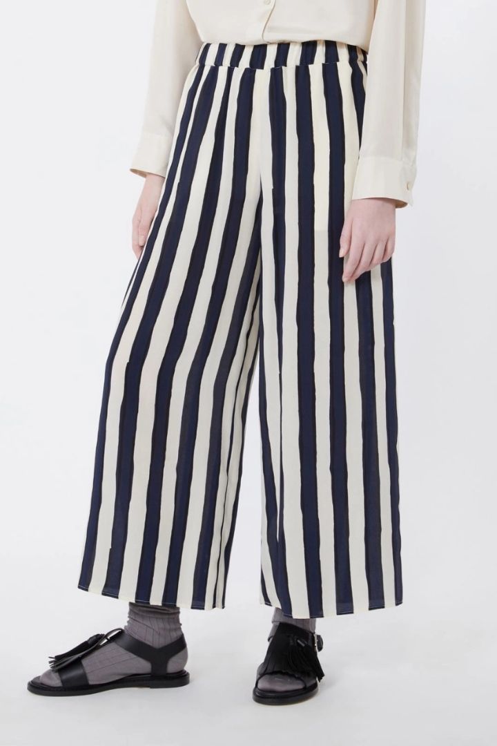 PANTALONE AMPIO CREPE DE CHINE PURA SETA RIGATO