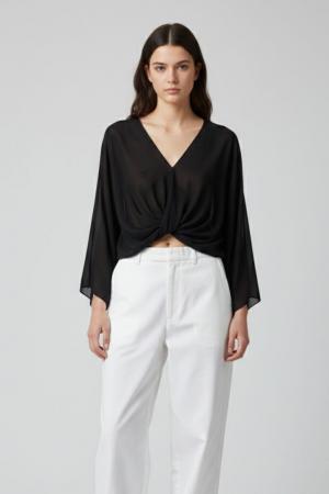 TOP MANICA LUNGA INCROCIATO IN CHIFFON