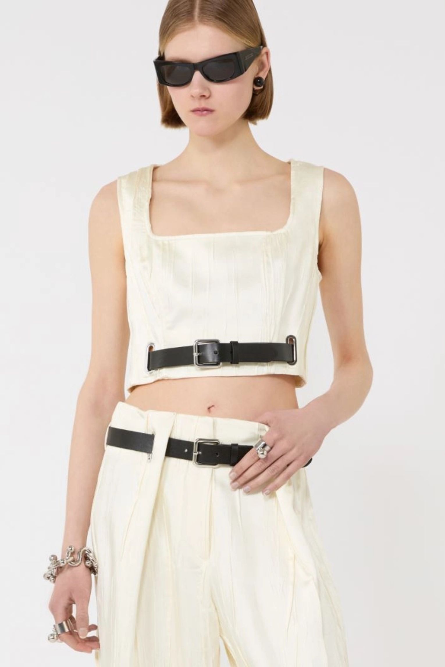 TOP CORTO PLISSETTATO IN RASO CON CINTURA